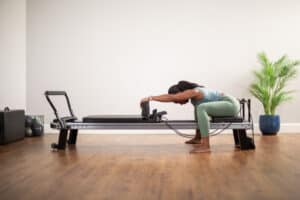 - Short Spine Stretch – controlled lifting and rolling of the spine on the reformer. Relieves the lower back while improving flexibility and movement awareness.